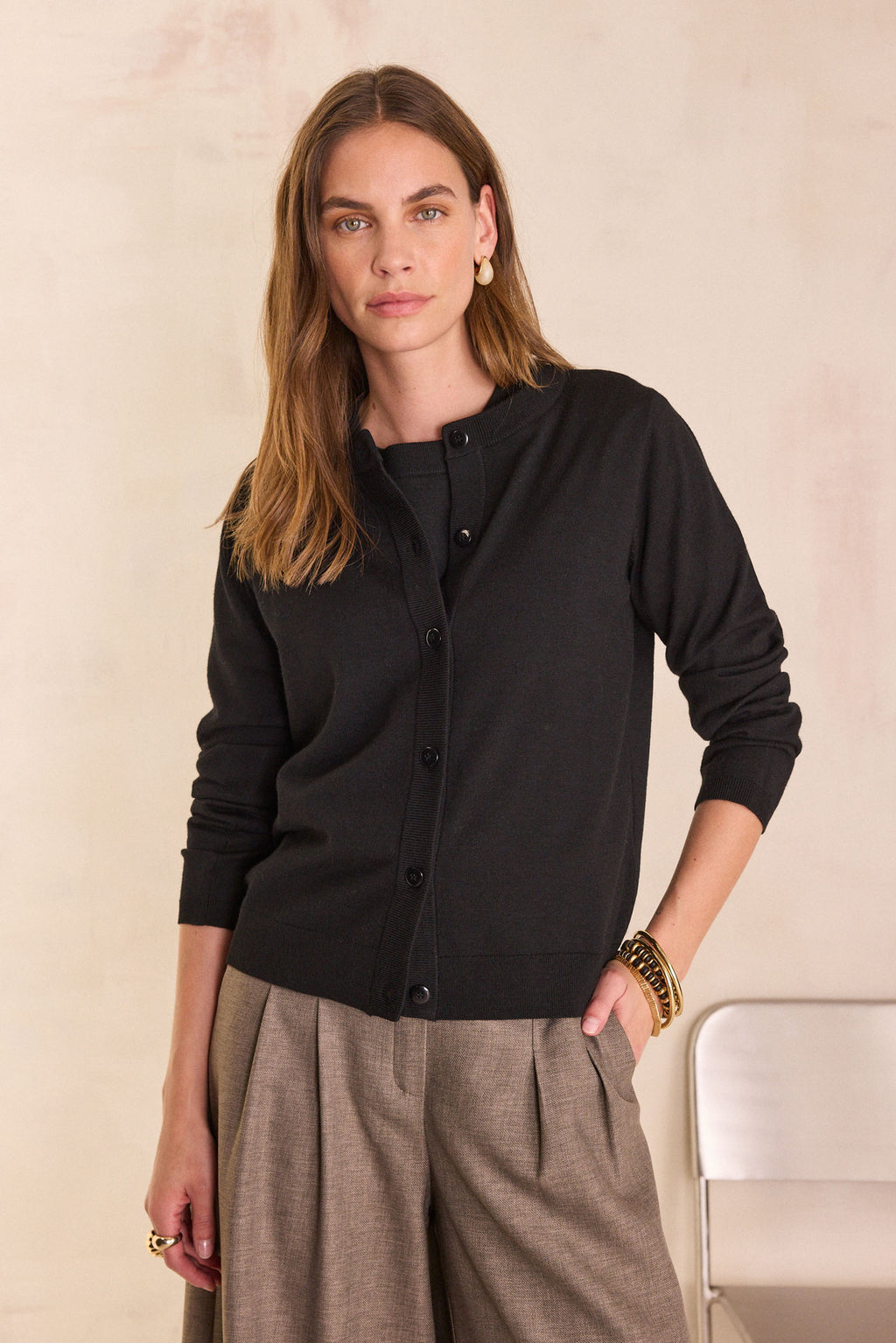 PAYTON BLACK WOOL BLEND CARDIGAN