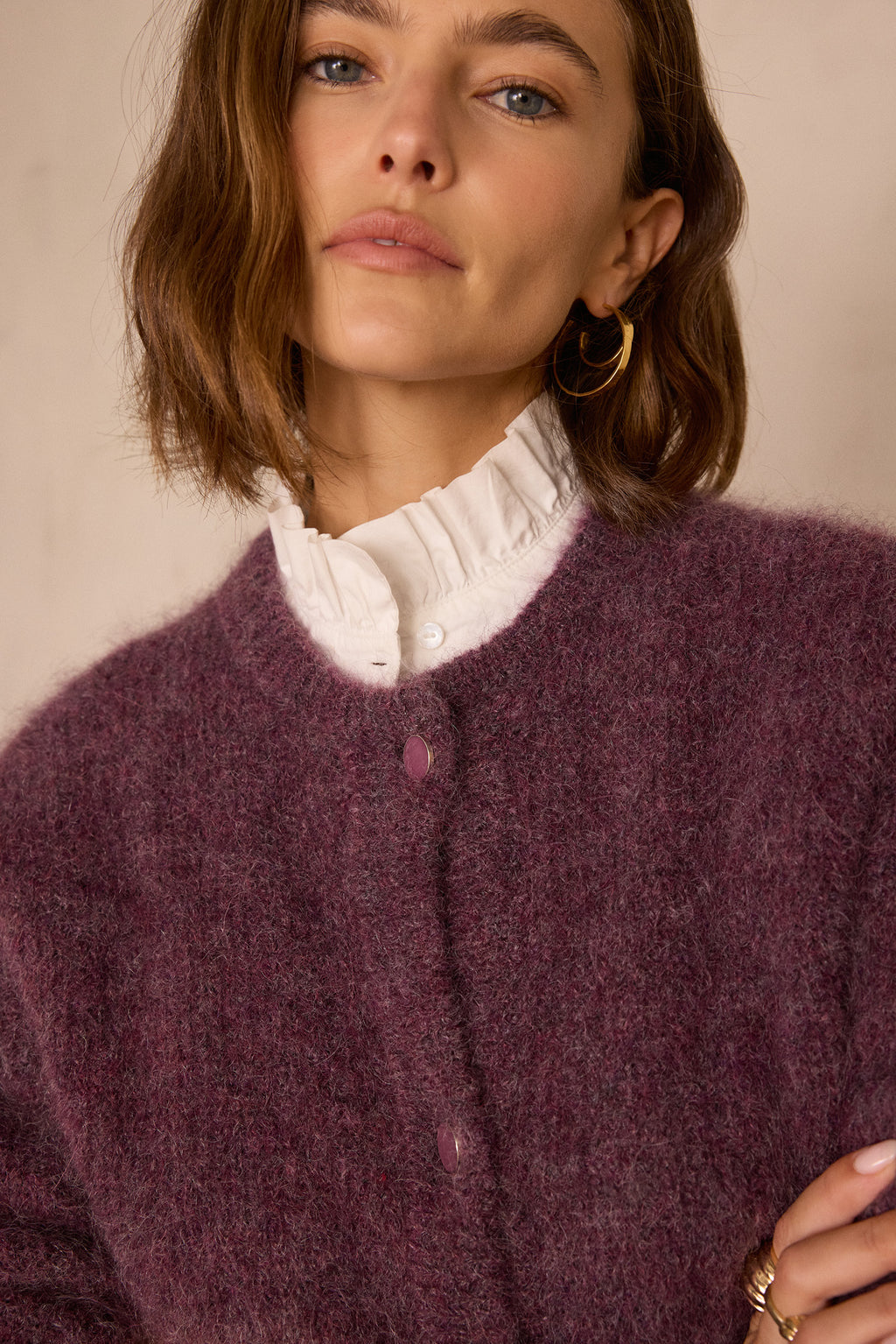 LOU AUBERGINE MOHAIR AND ALPACA CARDIGAN
