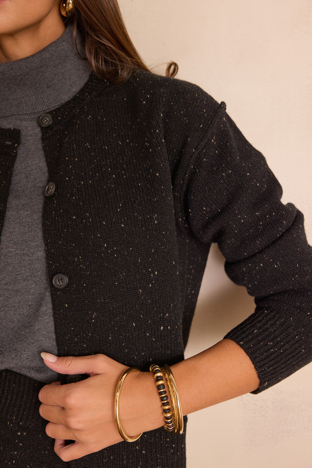 Fall for BAWER, our pure wool cardigan with a timeless style. Its flecked knit adds a touch of sophistication to your winter outfits.