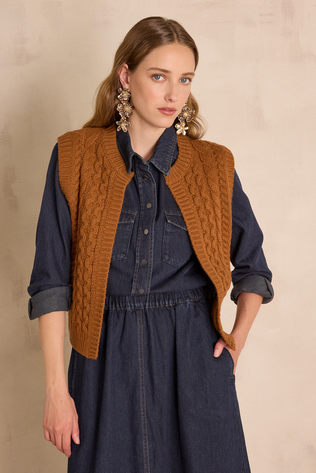 BIXENTE SLEEVELESS CINNAMON WOOL CARDIGAN