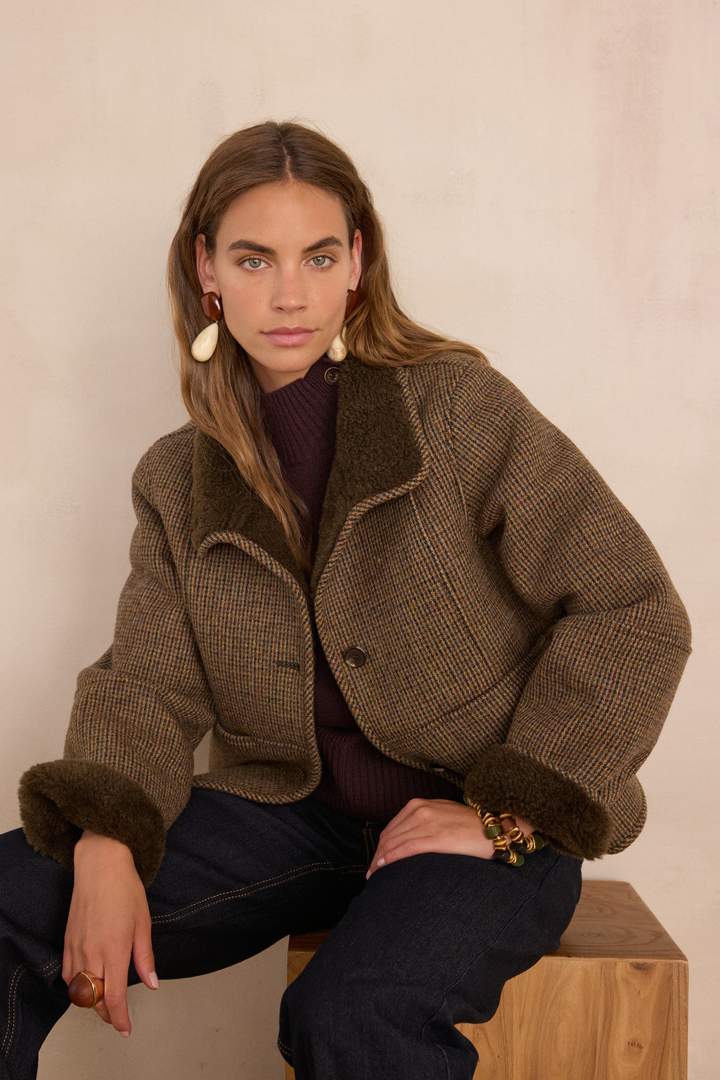 Fall for DARIO, our checked coat with a timeless style. Its structured cut and graphic pattern make it a statement piece in your wardrobe.