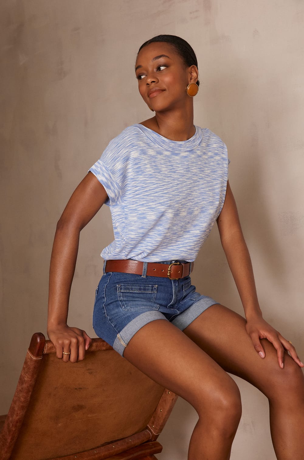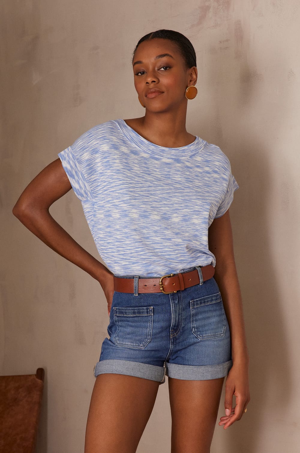 We love this SUNNY jumper with its casual and feminine style. Its Tunisian collar adds a touch of originality to this essential piece of the season.
