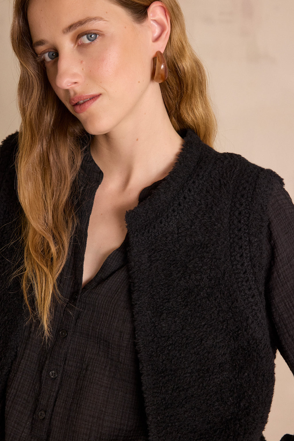 BAYANE BLACK SLEEVELESS WOOL CARDIGAN
