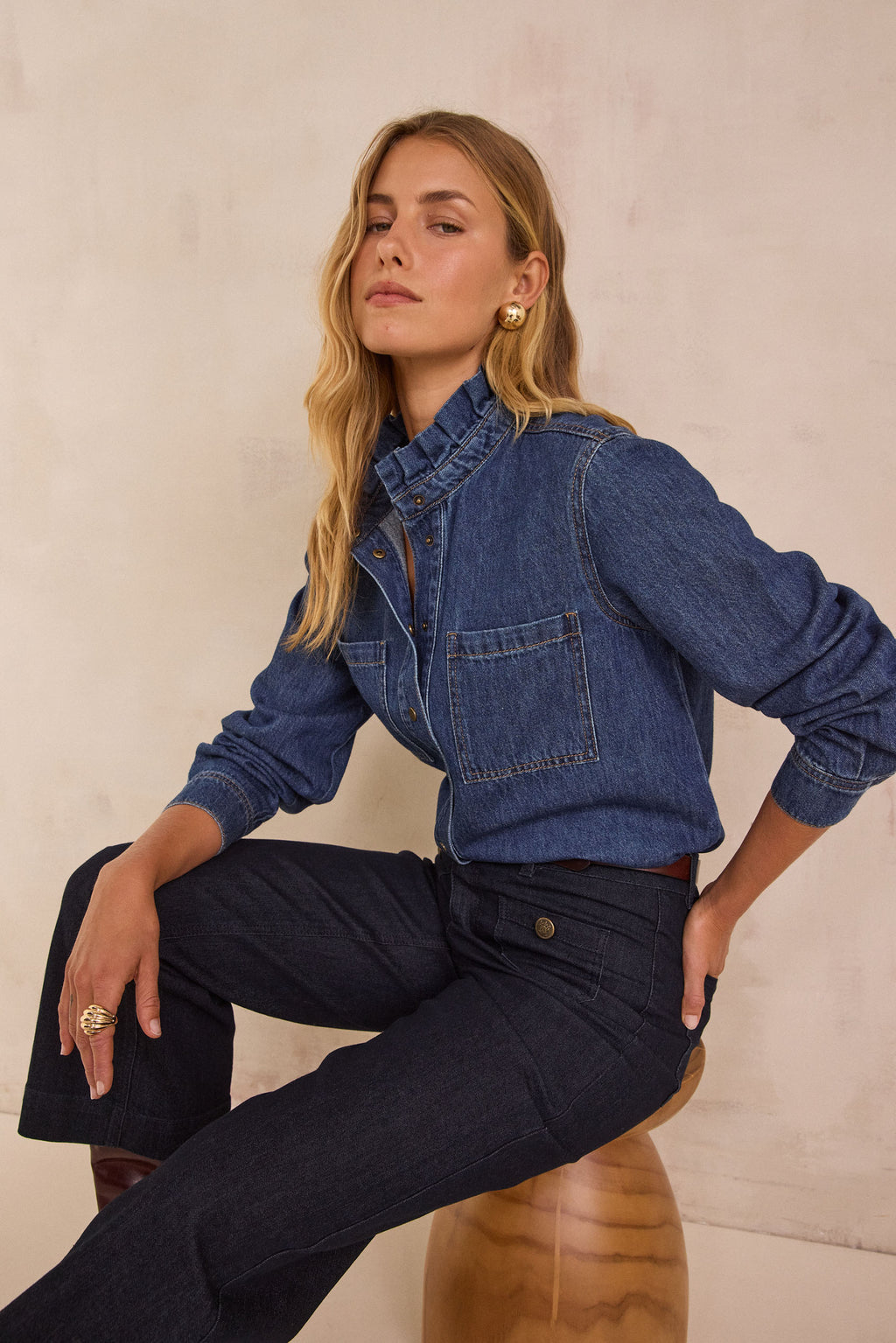 DENISE RUFFLED COLLAR DENIM BLOUSE