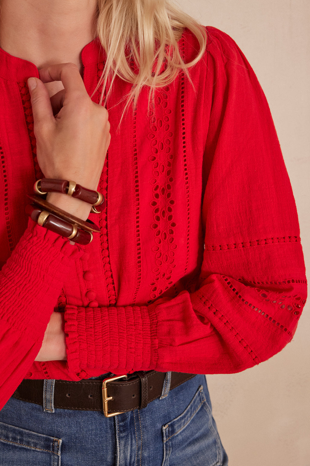 Let yourself be seduced by BAILA, our new cotton blouse that combines elegance and refinement thanks to its delicate embroidery and lace inserts.