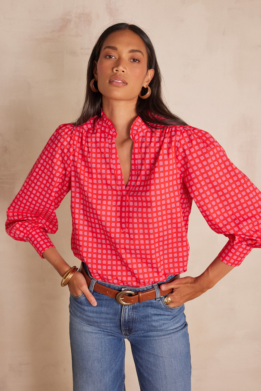 BETH RED PRINTED BLOUSE