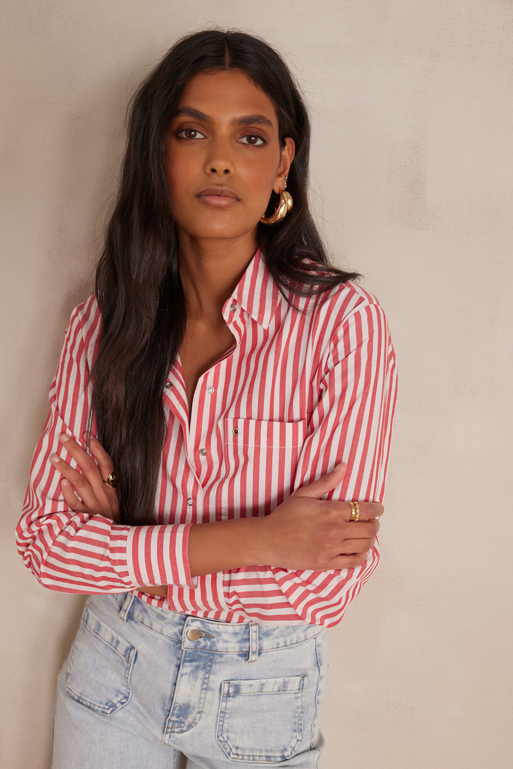 Fall for SAMY, our striped blouse that adds a touch of femininity to your wardrobe. Its graphic stripes and modern cut make it a must-have piece for the season.