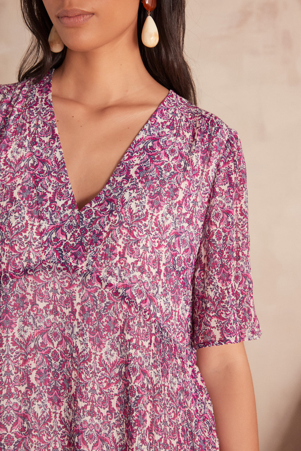 ALBINA DARK FUCHSIA ARABESQUE PRINTED DRESS