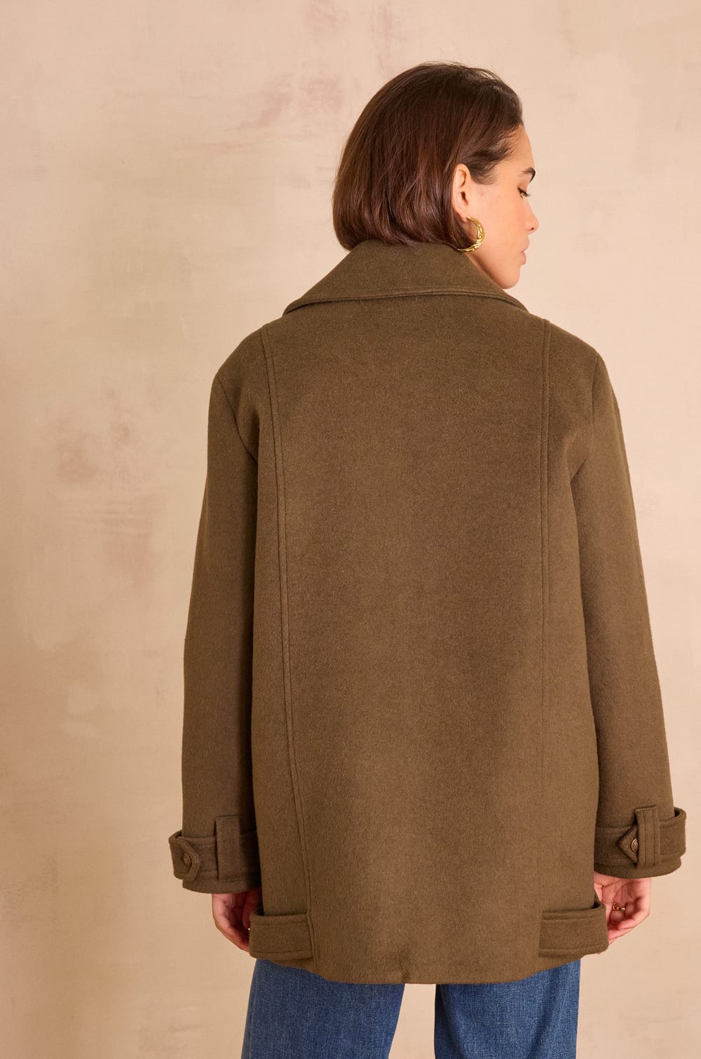 Fall for FLETCHER, our wool coat with a timeless pea coat style. Its gold buttons and structured cut make it an elegant and refined piece for the season.